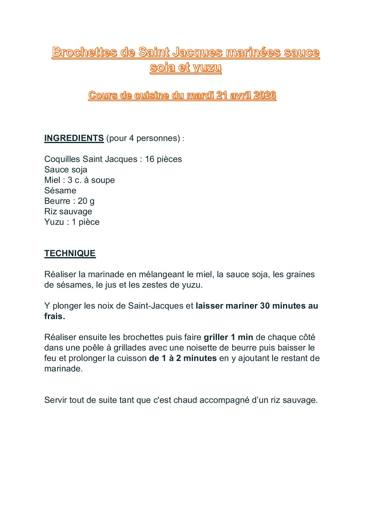 • Brochette de St Jacques yusu ;