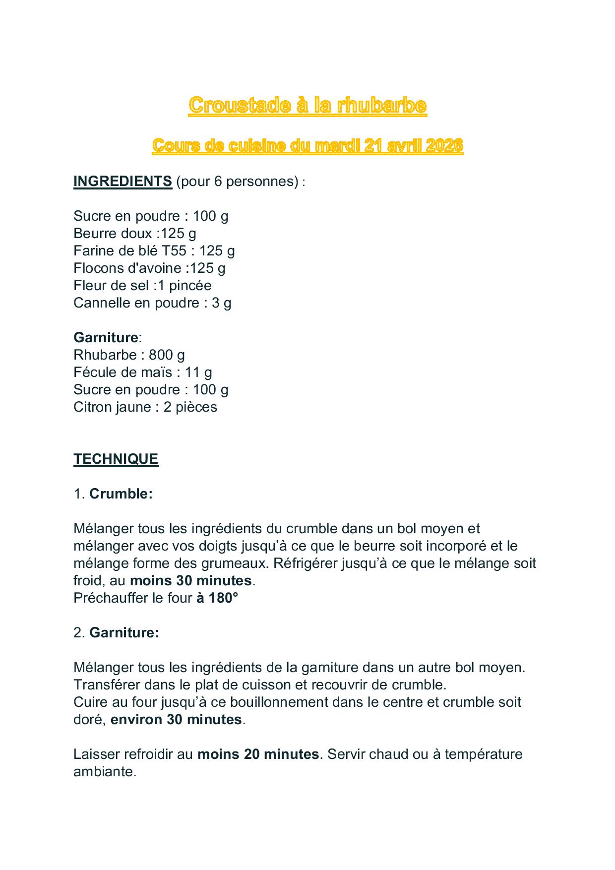 C’est parti ! Les inscriptions à ce sixième cours de cuisine de la saison 2025/2026 sont closes.