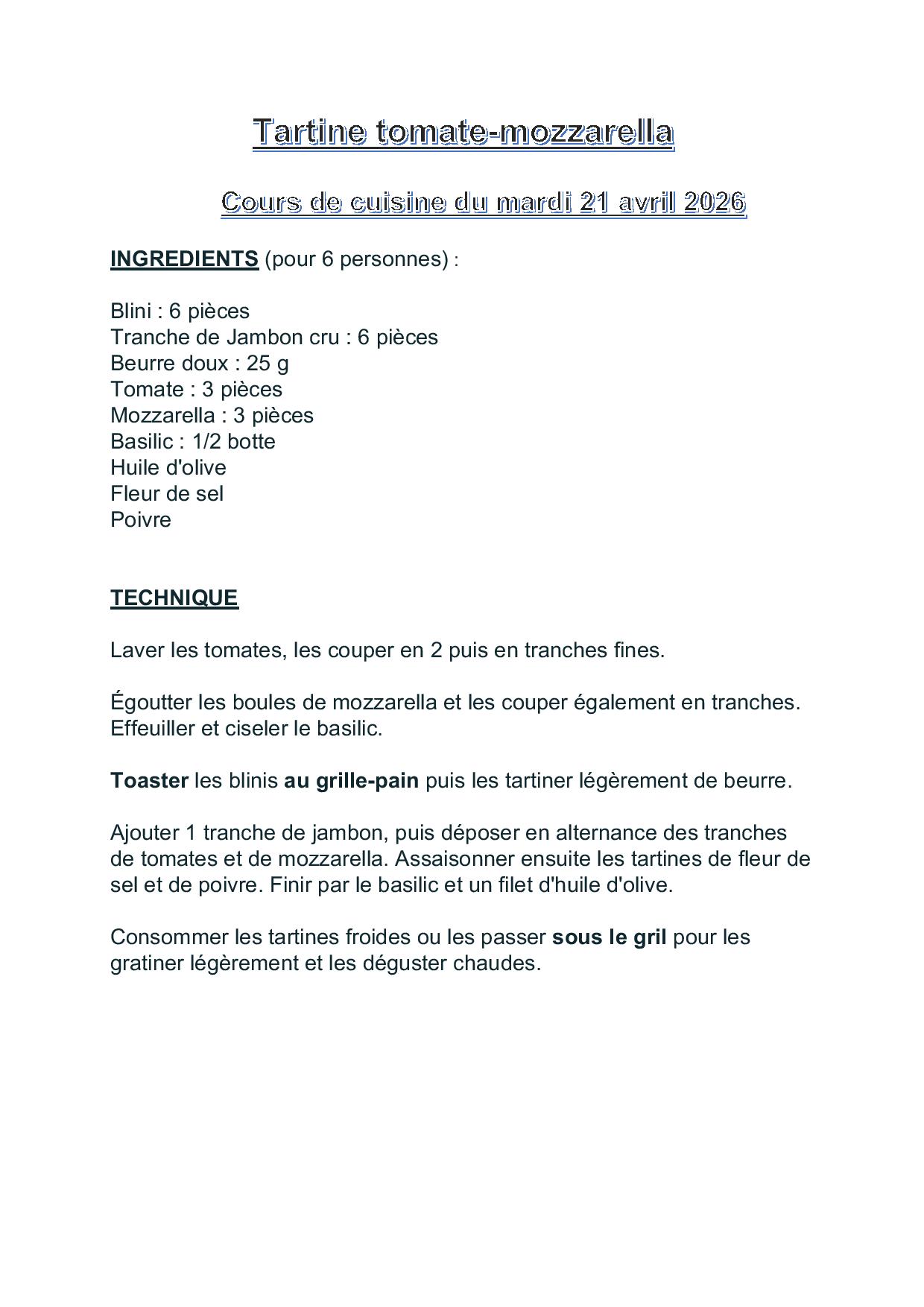 • Tartine tomate mozzarella ;